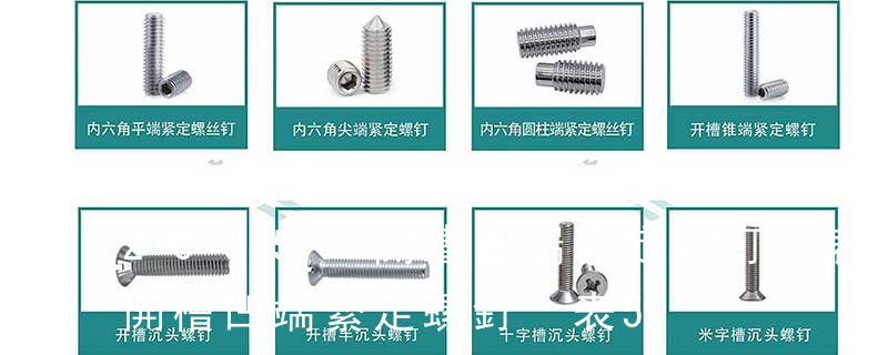 種類1)開槽普通螺釘。多用于較小零件的連接。它有盤頭螺釘、圓柱頭螺釘、半沉頭螺釘和沉頭螺釘。盤頭螺釘和圓柱頭螺釘?shù)尼旑^強度較高,瑁在普通的部件連接上;半沉頭螺釘?shù)念^部呈弧形,安裝后它的頂端略外露,且美觀光滑, 緊定螺釘通常由鋼或不銹鋼材料制造,它的端頭形狀有錐形、凹形、平頭形、圓柱形和階梯形等。錐端或凹端緊定螺釘?shù)亩祟^直接頂緊零件,一般用于安裝后不常拆卸處;平端緊定螺釘?shù)亩祟^平滑,頂緊后不損傷零件表面,用于需經(jīng)常調(diào)節(jié)位置的聯(lián)
