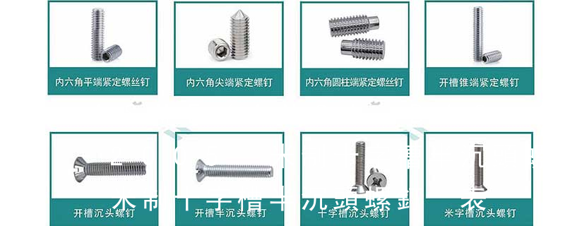 十字槽沉頭螺釘也屬于精密螺絲,一般市場上常用的都是比較小的規(guī)格型號尺寸。沉頭螺釘規(guī)格為M2,M3,M4,M5,M6,M8。這個指的是沉頭螺釘?shù)闹睆酱笮 3令^螺釘長度有4,5,6,8,10,12,14,16,20,25,30,35,4 1.開槽螺釘2.十字槽螺釘3.內(nèi)六角螺釘4.內(nèi)六角花形半沉頭螺釘5.內(nèi)六角花形盤頭螺釘6.內(nèi)六角花形圓柱頭螺釘7.內(nèi)六角沉頭螺釘8.內(nèi)六角圓柱頭頭螺釘9.內(nèi)六角平圓頭螺釘10.十字頭螺釘2.4.3 緊定螺釘1.開槽錐端緊定螺釘2.開槽平端