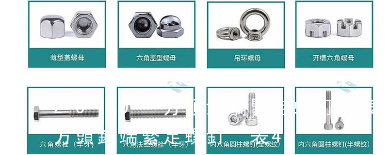 緊定螺釘主要用于固定兩個零件之間的相對位置。特殊用途螺釘例如有吊環(huán)螺釘?shù)裙┑跹b零件用。4. 螺母:帶有內(nèi)螺紋孔,形狀一般呈顯為扁六角柱形,也有呈扁方柱形或扁圓柱形,配合螺栓、螺柱或機器螺釘,用于緊固連接兩個零件,使之成為一件整體 止付螺絲就是一端為內(nèi)六角,另一端有好幾種標準。螺絲,也有人叫它“螺釘”[Screw] (螺絲釘)、“螺桿”(螺絲桿)。其實螺絲是通稱,而螺絲釘、螺絲桿都是互有區(qū)別的。螺絲釘一般叫木螺絲;是前端有尖頭的那種,螺