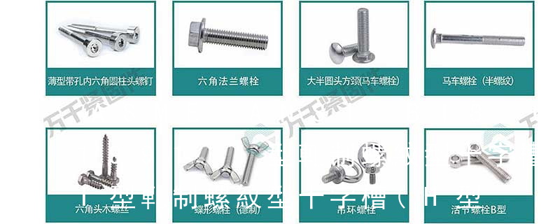 1、Flat:平頭 (鎖入后,頂部與工作件齊平)2、Oval:色拉頭、O頭、半沉頭 3、Round:圓頭 4、Pan:圓扁頭 5、Truss:大圓扁頭 6、Hex:六角頭 A-5:Finish Code/外觀處理。公制自攻螺絲 :于品名后方直接標示 Tapp 六角花形等;內(nèi)扳擰:一字槽、十字槽H型、十字槽Z型、十字槽F型、四方槽、復合槽、內(nèi)花鍵、內(nèi)六角花形、內(nèi)三角、內(nèi)六角、內(nèi)12角、離合器槽、六葉片型槽、高扭矩十字槽等。3、螺紋種類螺紋種類繁多,有自攻螺紋(
