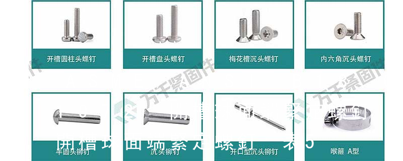 1)開槽普通螺釘多用于較小零件的連接。它有盤頭螺釘、圓柱頭螺釘、半沉頭螺釘和沉頭螺釘。盤頭螺釘和圓柱頭螺釘?shù)尼旑^強(qiáng)度較高,瑁在普通的部件連接上;半沉頭螺釘?shù)念^部呈弧形,安裝后它的頂端略外露,且美觀光滑,一般